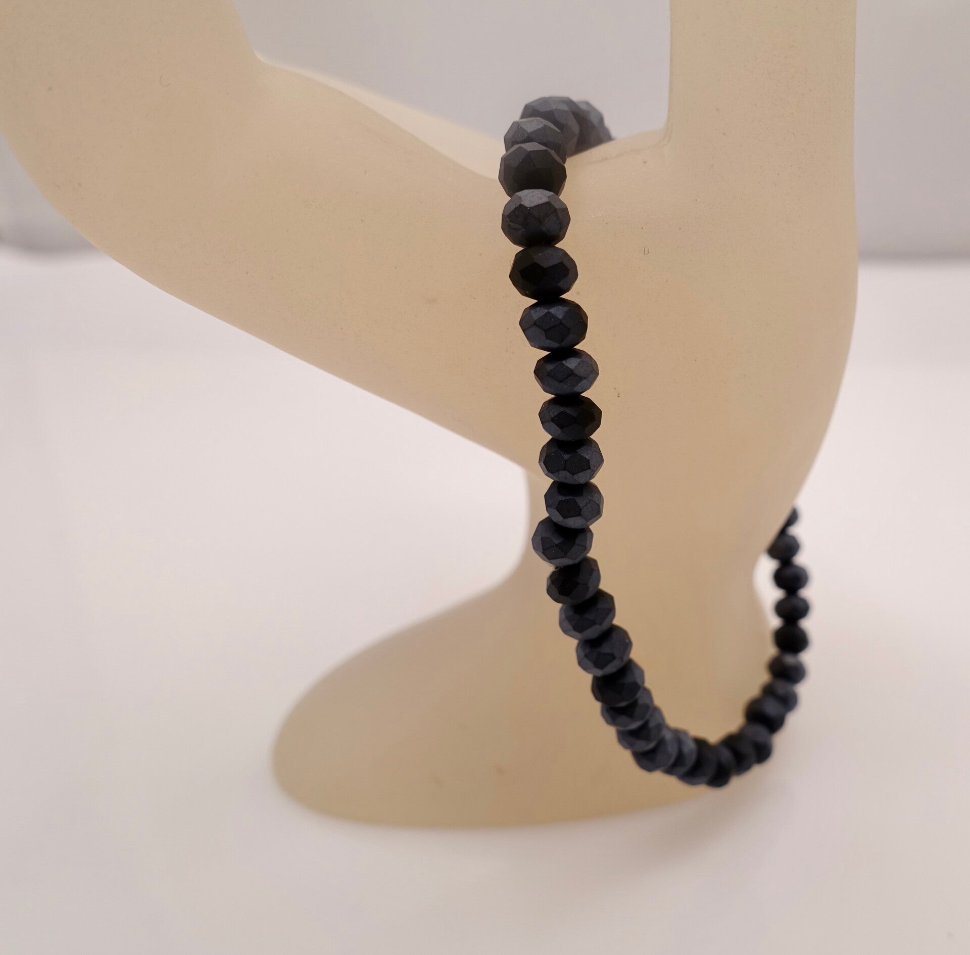 Diepdonkerblauw armbandje van gematteeerde facetkraaltjes, elastisch.