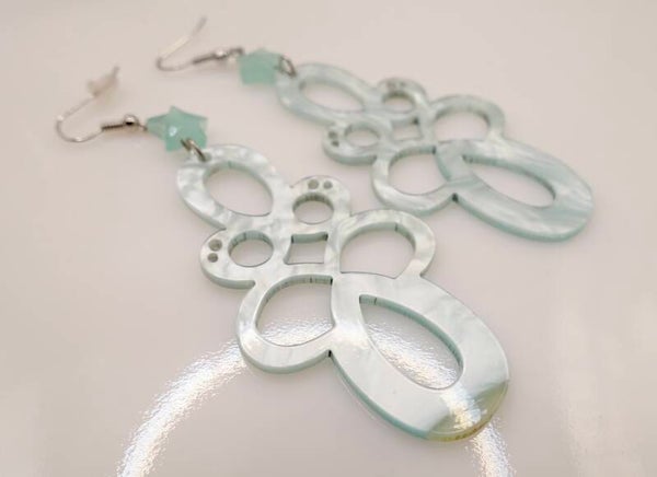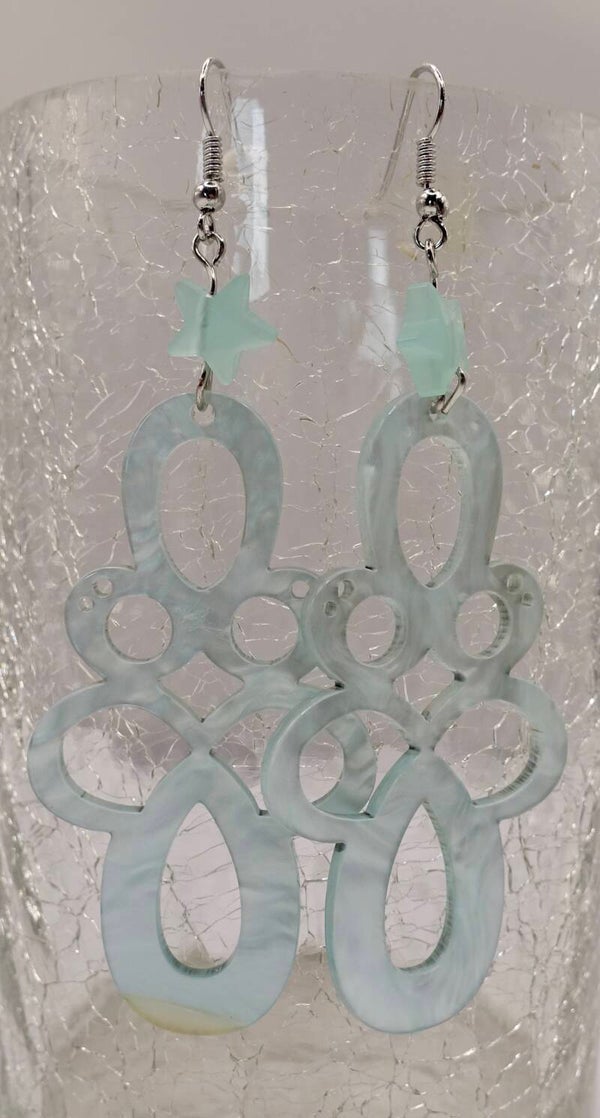 Sky bleu barok oorhangers van resin, super licht, aan facet geslepen glas sterretje. Lengte ca. 9cm.
