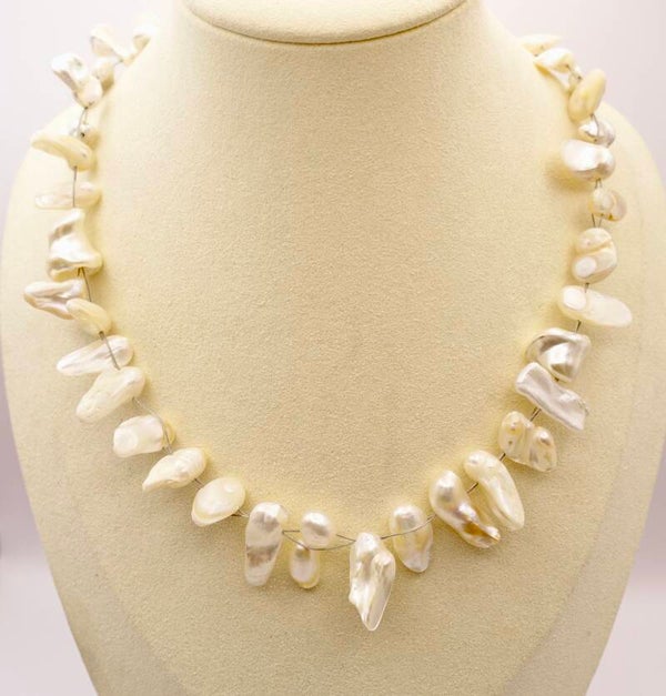 KKec015124: Parelketting in ecru/champagne van barok- en zoetwaterparels.