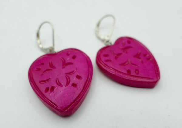 Fuchsiaroze oorhangers met zilvermetaal afgewerkt. Heel licht. Echte blikvangers.
