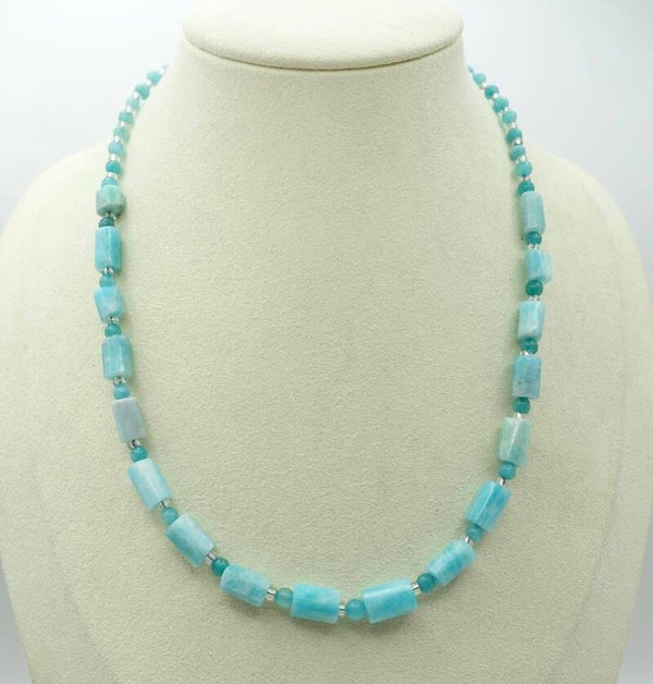 Pastel turquoise ketting van Braziliaanse amazoniet buiskralen. Mooi in al haar eenvoud. Mooi bij petrol. turquoise, wit, donkerblauw, ecru, grijs, etc. Heel licht.