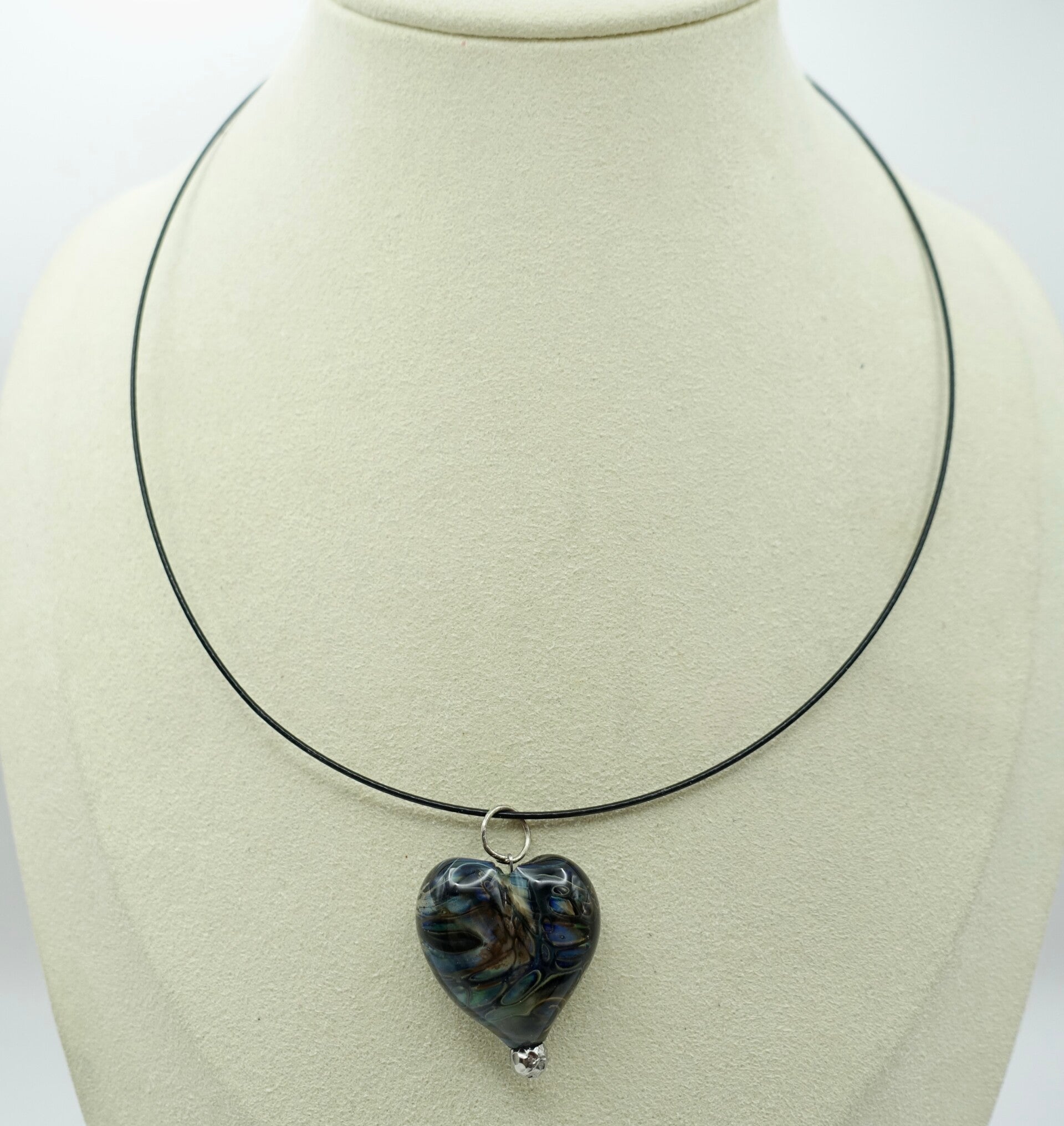 Diep donkerblauwe hanger in hartvorm, met metallic motief door het gebruikte zilverglas. Let op de mooie tekening in de hart-hanger. Uniek motief, aan beide kanten verschillend. Aan een spang, maar je kunt hem ook aan een zilveren kettinkje hangen. Lengte ca. 4cm.