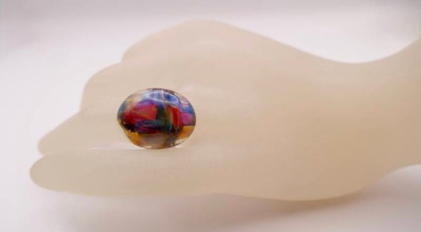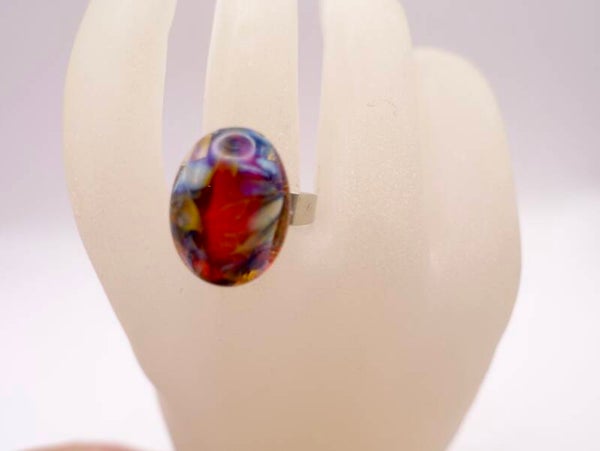 Riros6: Ovale, verstelbare ring van zilverglas in roze, lila en greige.