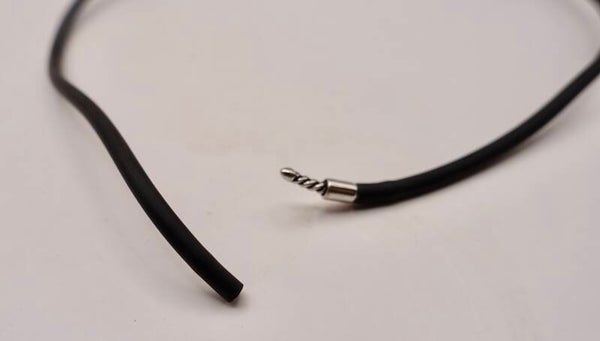 Kettinkje met handmade glaskralen in blauw-, grijs-, groentinten uit eigen atelier, afgewisseld met petrol glaskraaltjes. Aan rubber kettinkje dat je zelf eventueel nog in kunt korten door een stukje rubber af te knippen. Prachtige kralen!