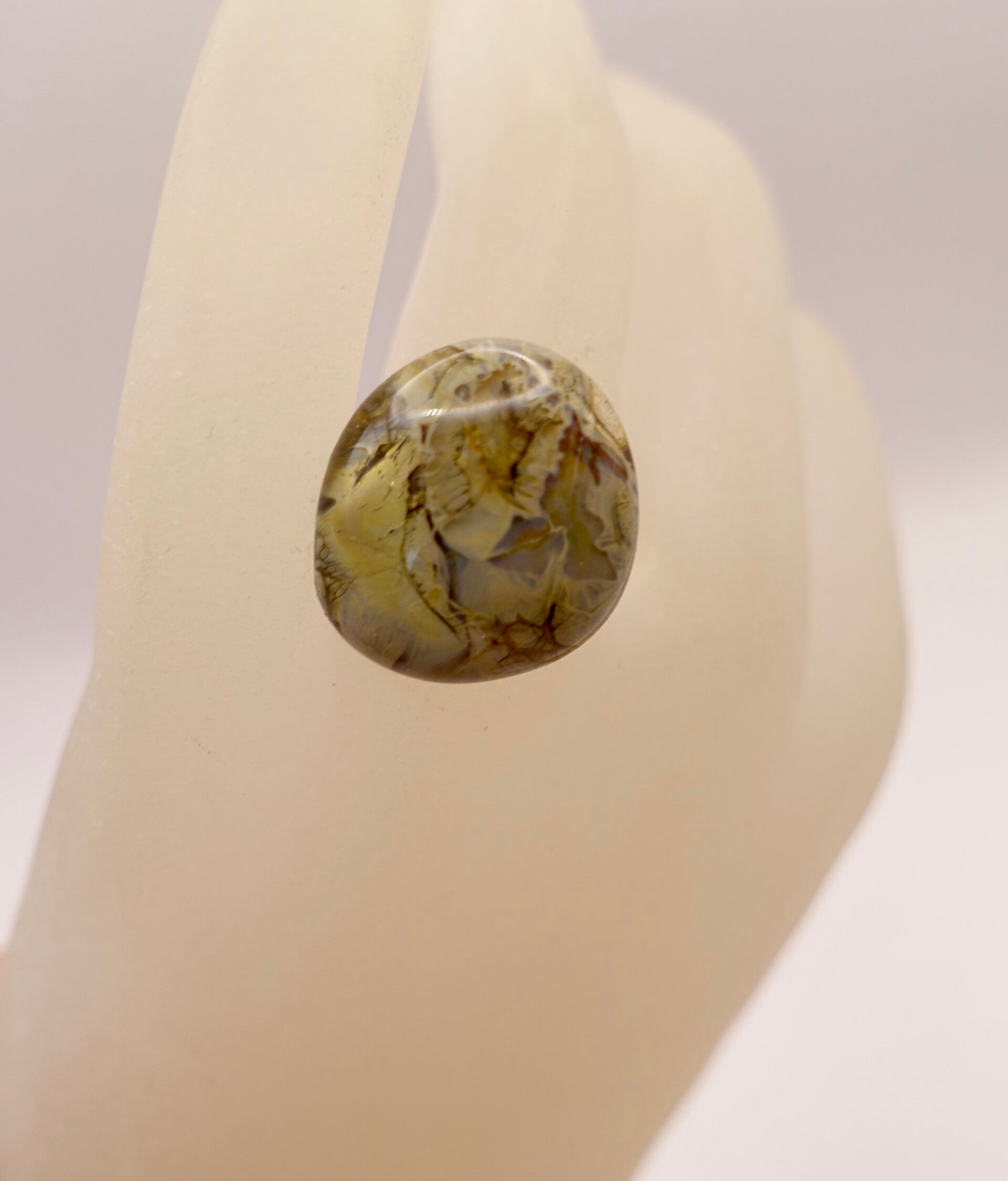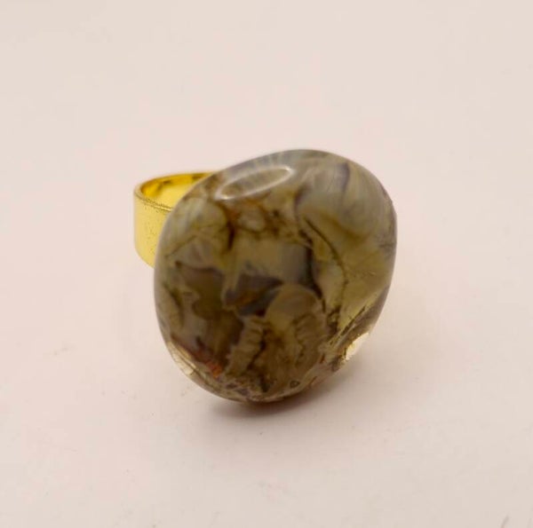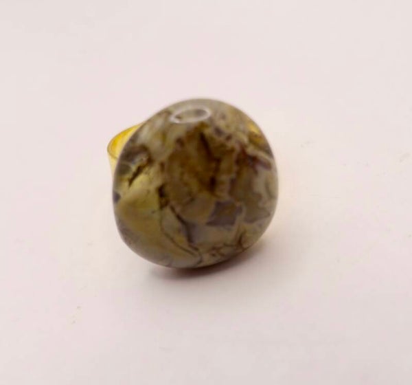 Taupe, bruine ring van glas, uit eigen atelier. Plaatje!