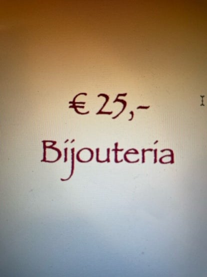 Bon ter waarde van €25,- om iets moois uit te zoeken in onze webshop. Een persoonlijk cadeau. De bon is niet inwisselbaar voor geld. Je ontvangt de cadeaubon digitaal.